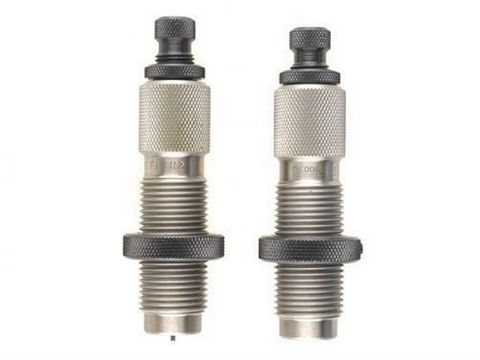 Full length die sets for bottleneck cases contain two dies. The full length (FL) resizing die contains a decapping rod assembly with a neck expander (size button). The seating die (ST) includes bullet guide, built-in crimp ring and the proper seating plug